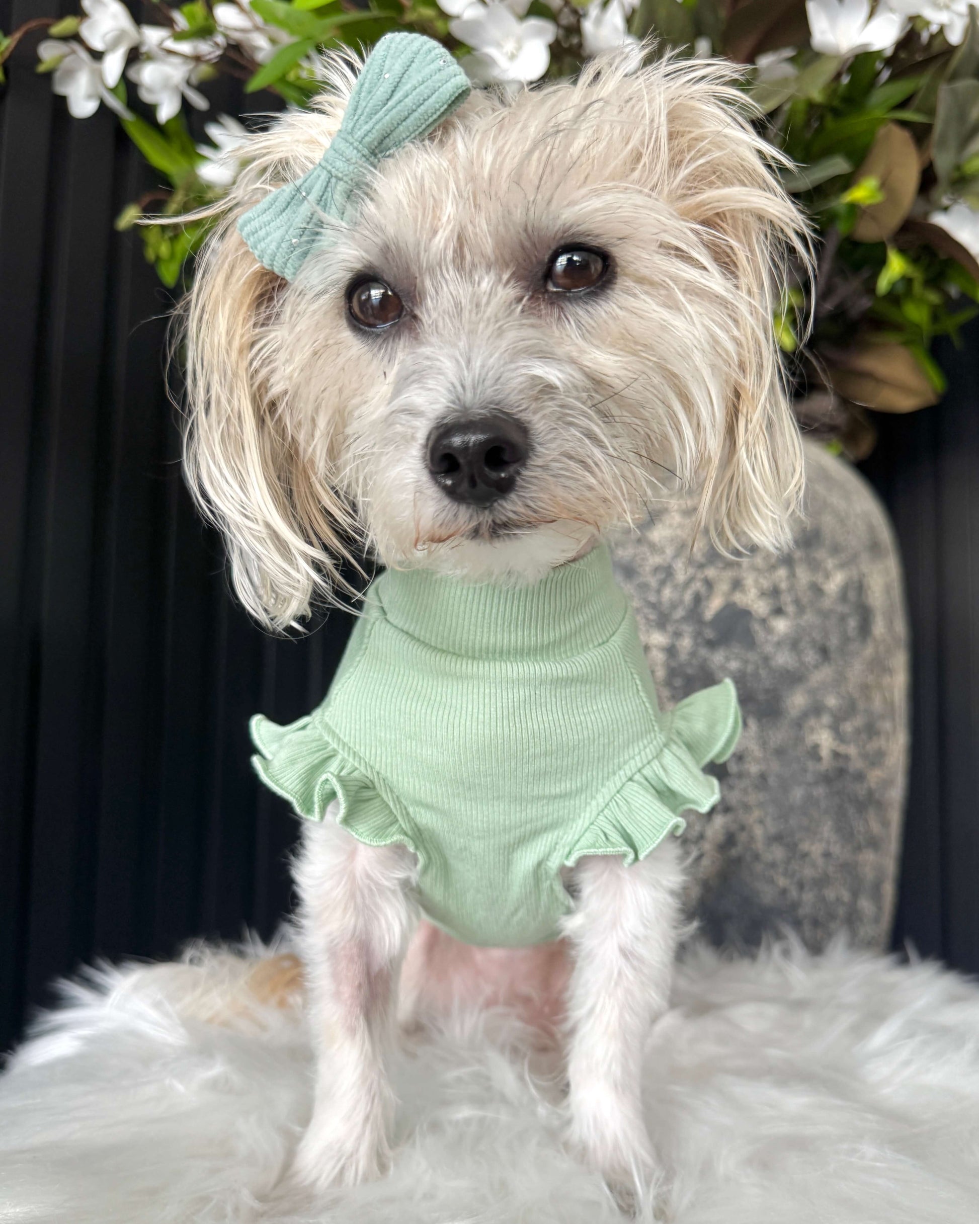 If you are between sizes it is best to take the size up. for example your pups chest measurement is 33cm you would select size XXS. These tops are stretchy so may have a few cms give if needed. Weight guide is a rough guide only.