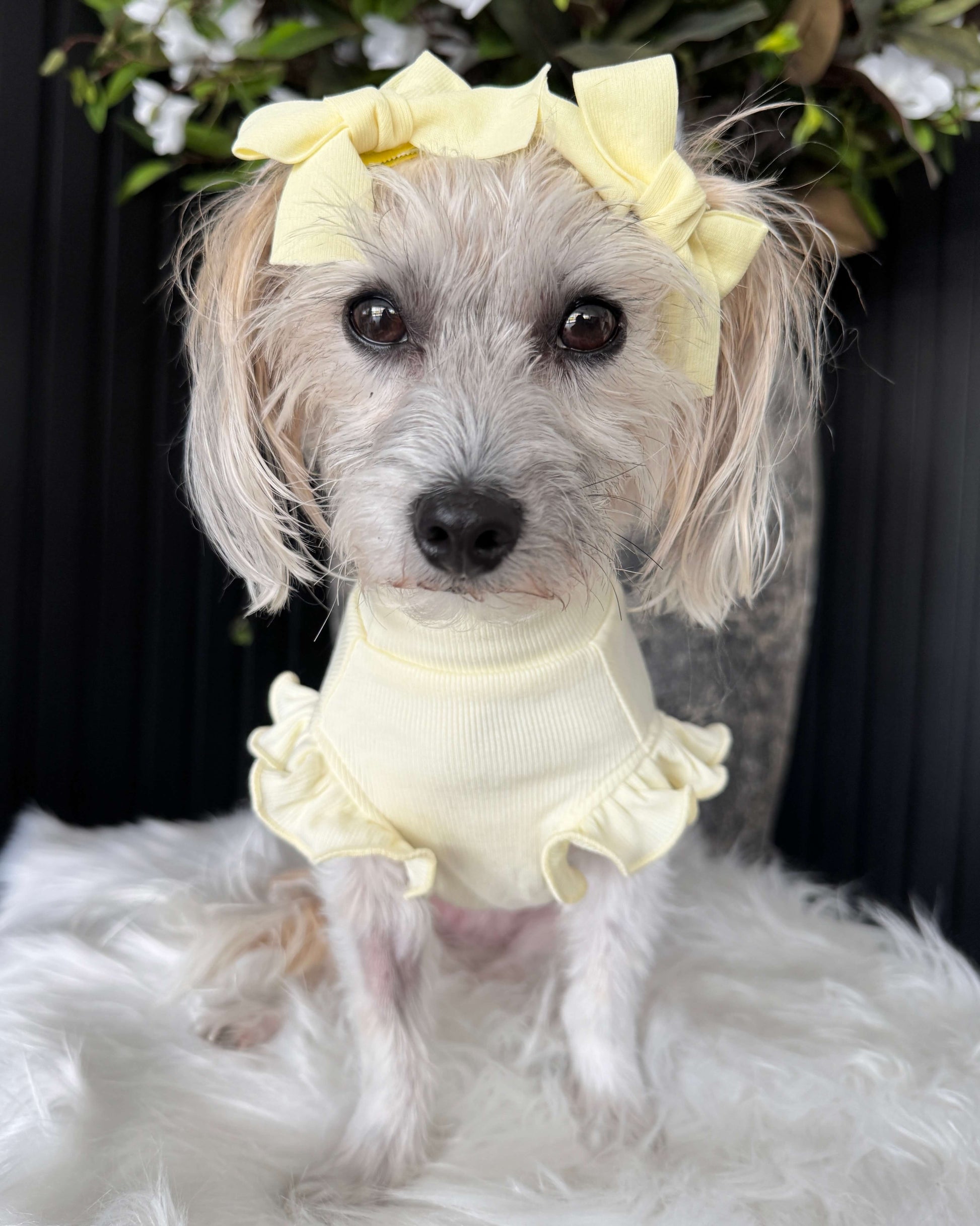 If you are between sizes it is best to take the size up. for example your pups chest measurement is 33cm you would select size XXS. These tops are stretchy so may have a few cms give if needed. Weight guide is a rough guide only.