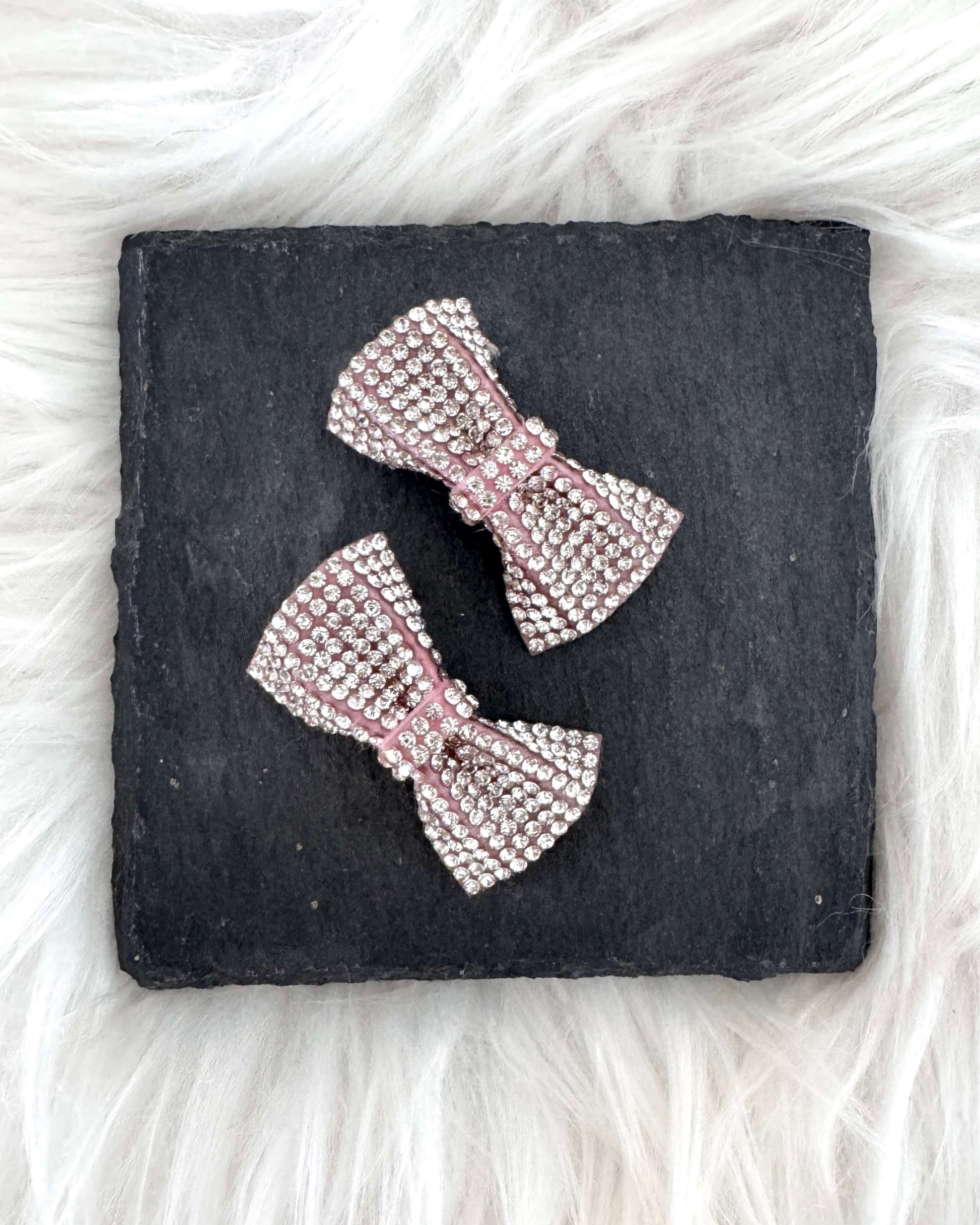 A dazzling mini bow adorned with shimmering crystals that catch the light from every angle. Perfect for adding a glamorous touch to your pup’s look, this bow shines with chic sophistication.
