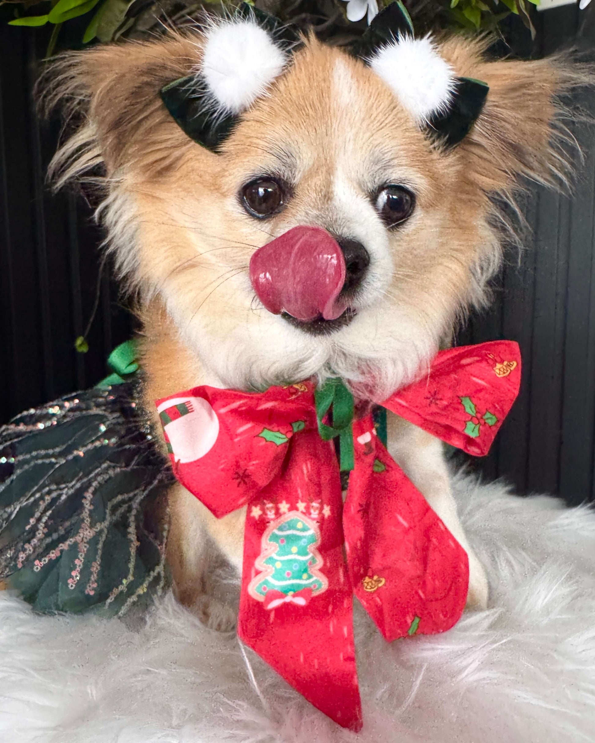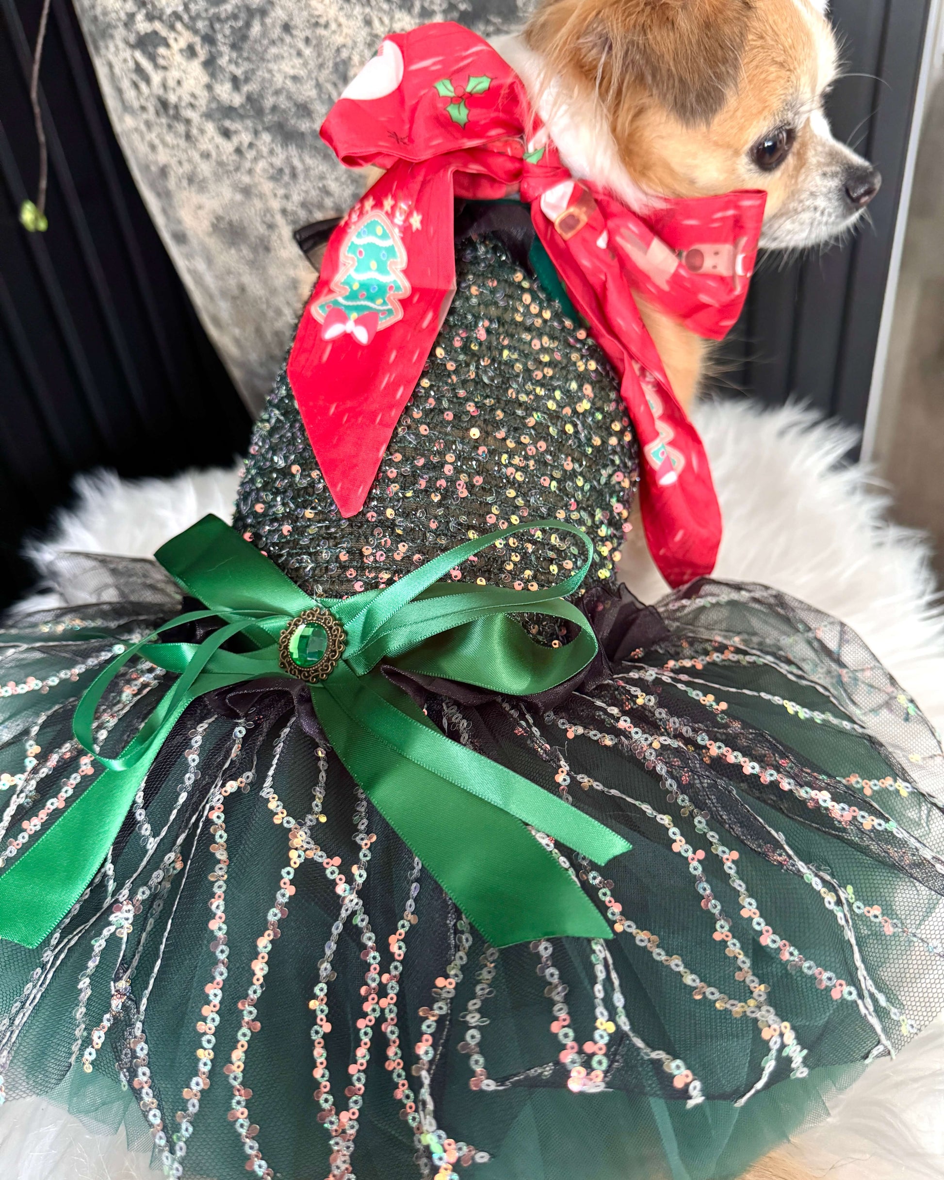 This festive luxury pet dress is a glamorous holiday piece designed to make any pup the star of Christmas celebrations.