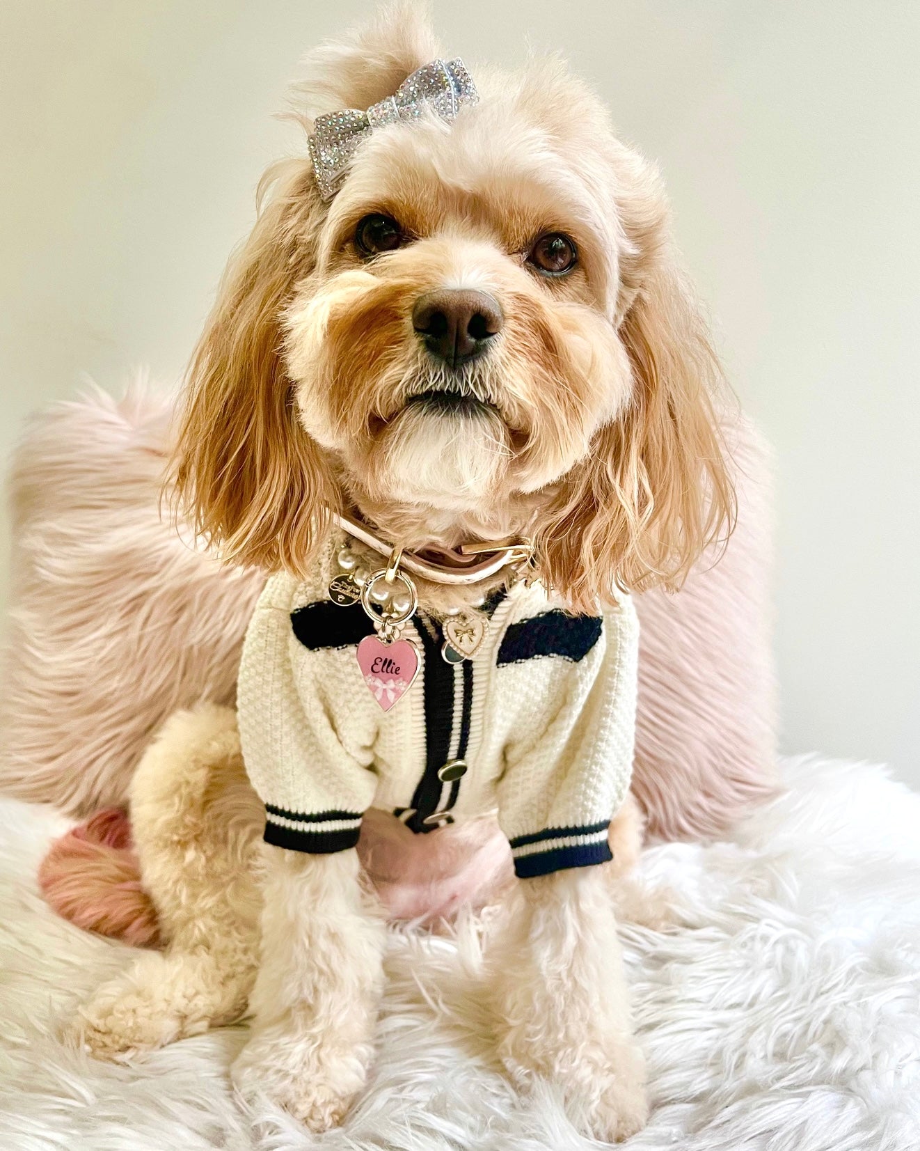The Felicity is a soft classy cardigan with a pearl bead trim on the neckline, it is the ultimate blend of luxury and comfort. Its sophisticated design and elegant details make it a standout piece in your pet's wardrobe, ensuring they look their best while feeling cozy and loved.