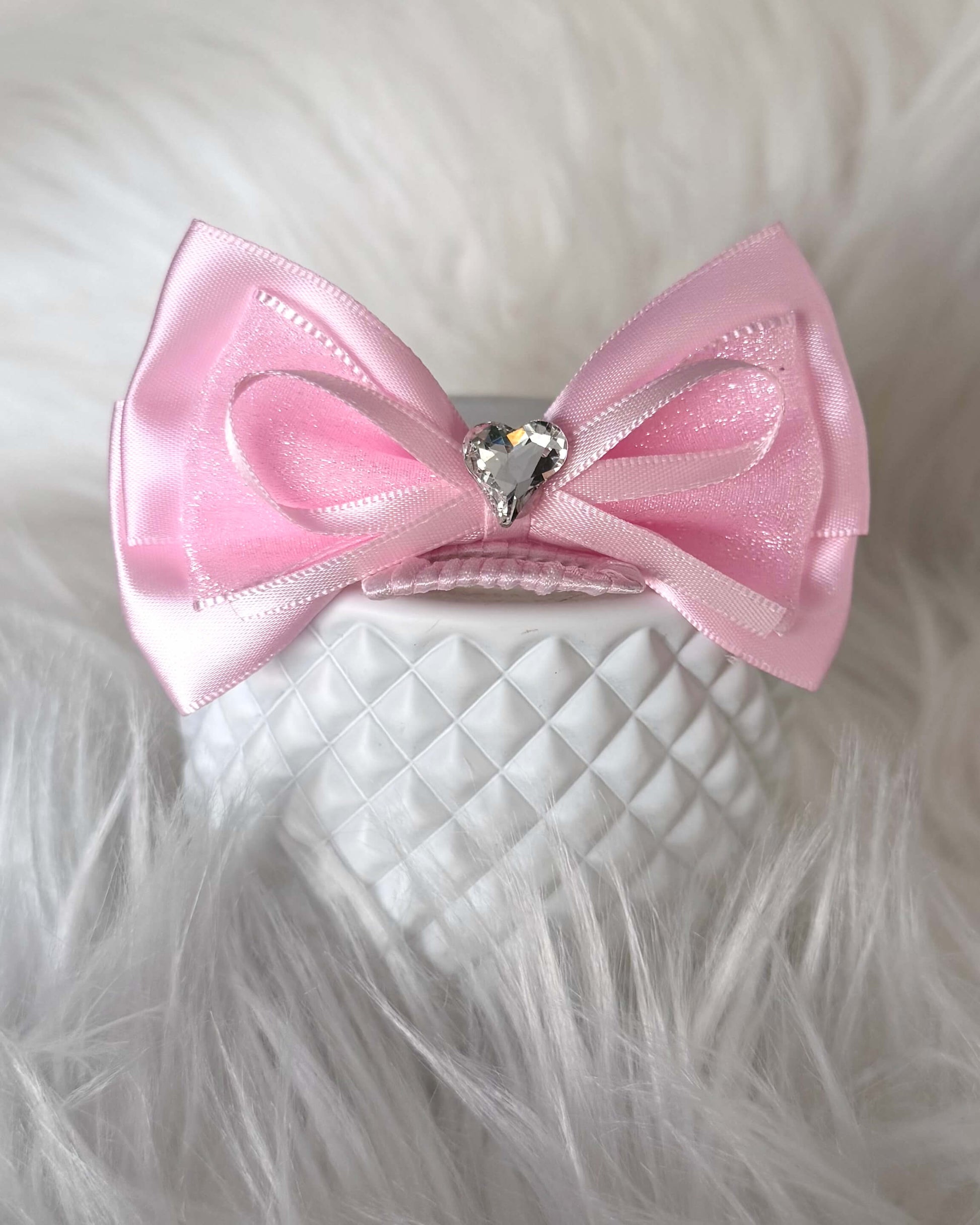 The bow is secured on a mini barrette snap clip. Many pet parents love this clip for shorter-fur pups, as the fine teeth can grip the coat effectively. Others find that once positioned correctly, this style stays in place longer and is less likely to fall off, even during play.