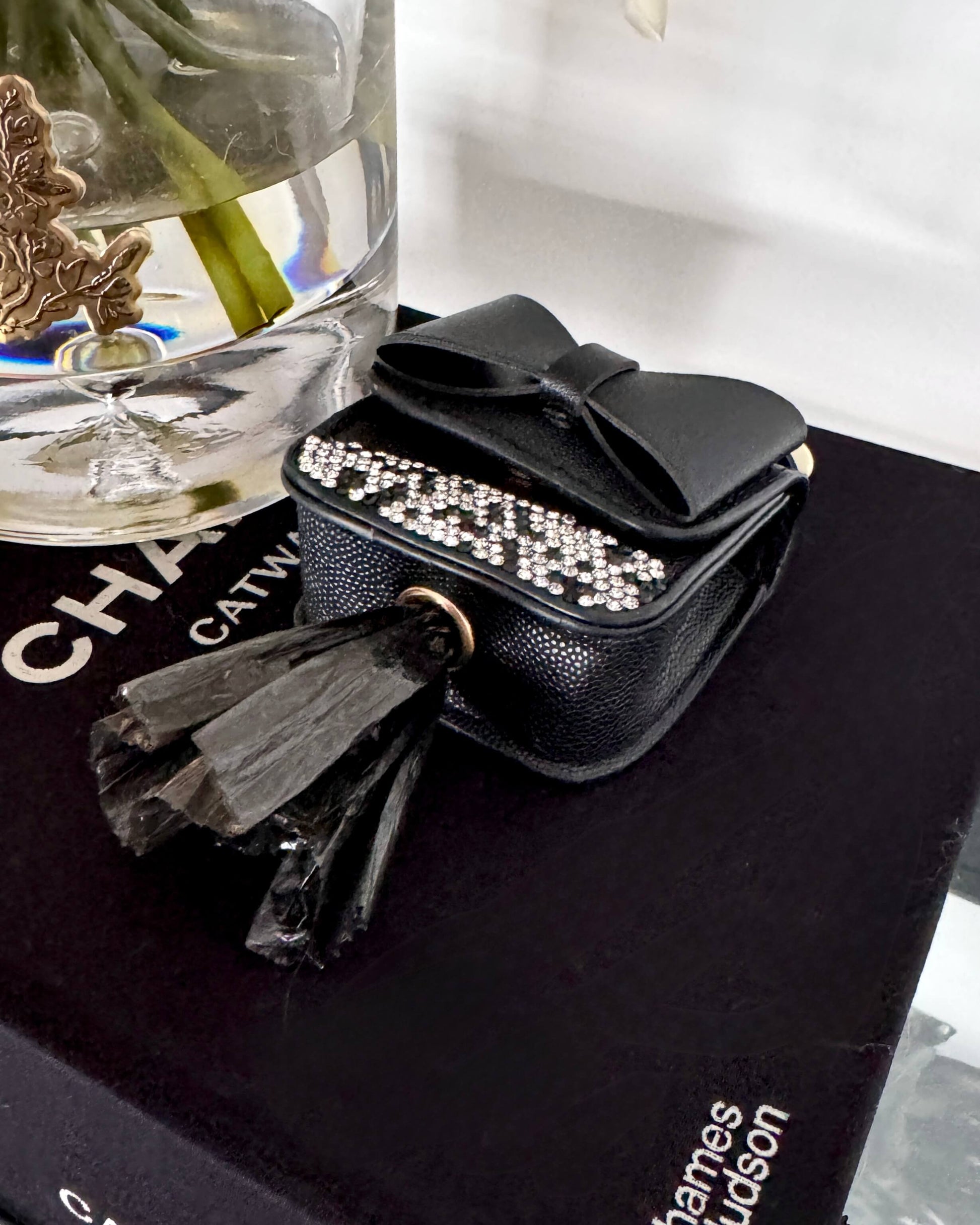 Who says clean-up can’t be couture? Our Crystal Bow Poop Bag Carrier is the ultimate blend of high fashion and everyday function. Dressed in black vegan leather, adorned with a sparkling bed of black and silver crystals, and topped with an oversized bow and playful bunny ear silhouette—this isn’t just a poop bag holder, it’s a statement piece.