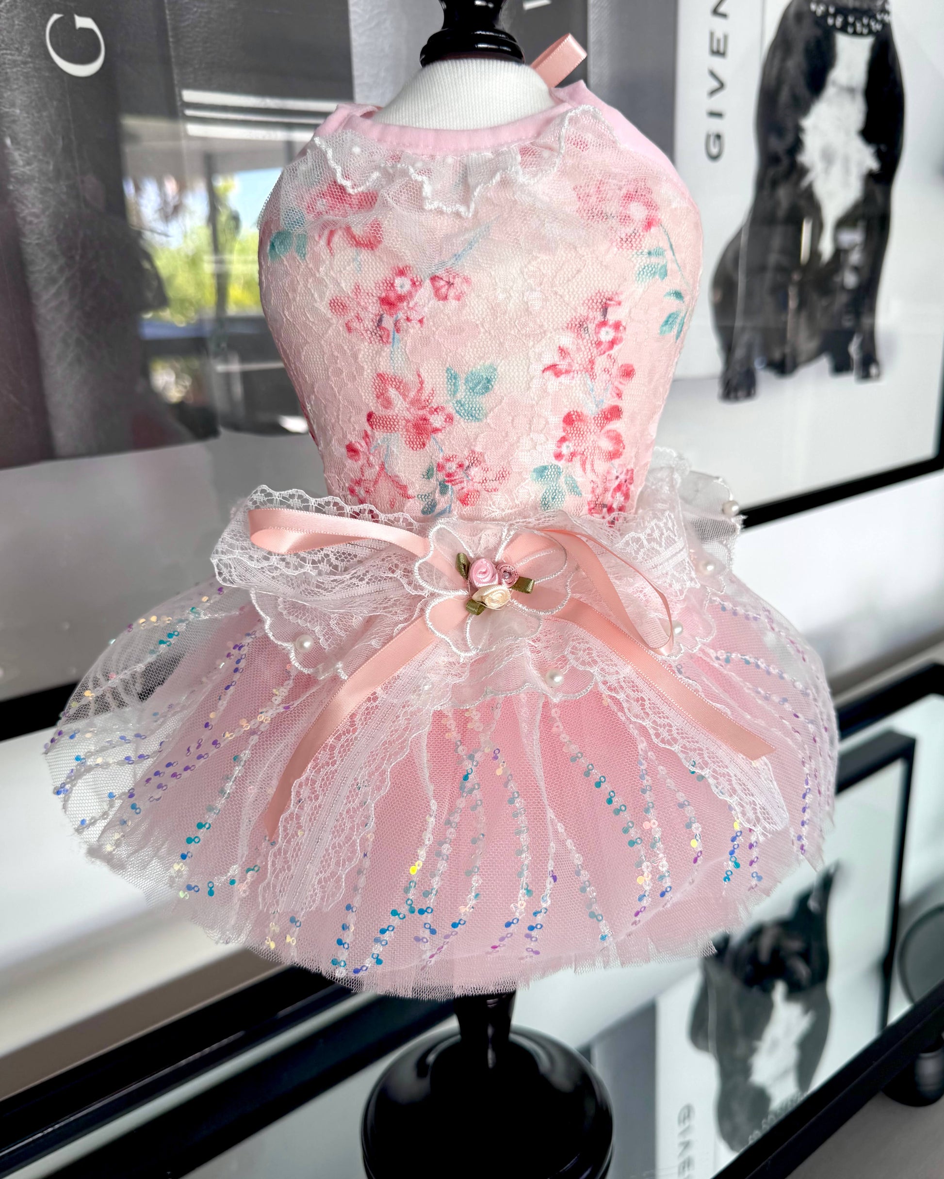 The skirt falls into a lush, voluminous tutu, layered with soft tulle and subtle shimmer for graceful movement and a full, airy shape. Lightweight and comfortable, this dress is perfect for special outings, celebrations, or simply looking extra beautiful on any day.