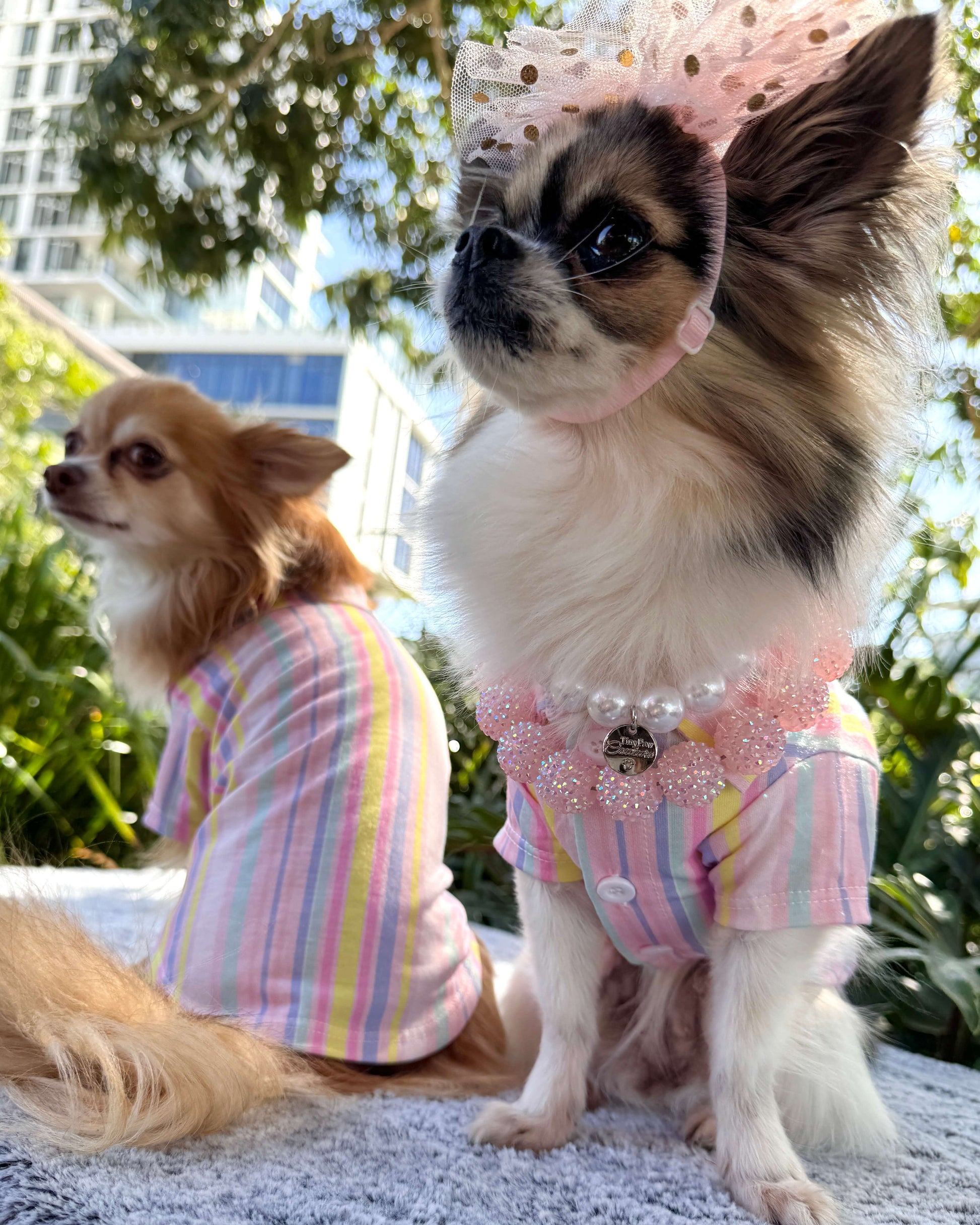 The Pastel Riviera Dog Shirt is a charming blend of elegance and easy comfort for the pup with an eye for colour.